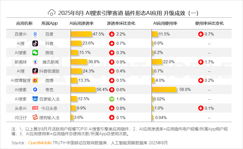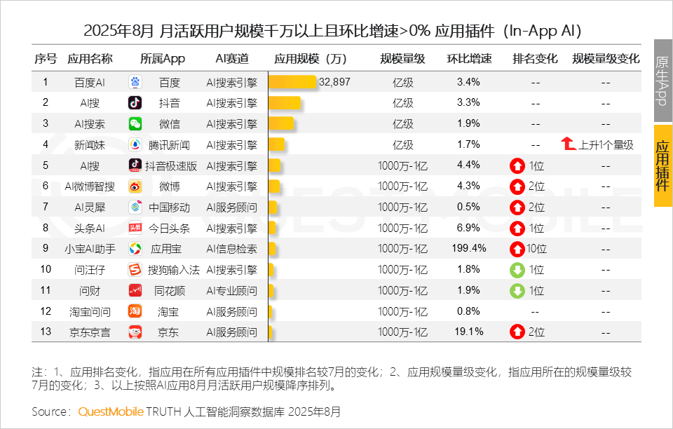 AI搜刮引擎、AI分析帮手遥遥领先,原生APP亿级使用的平均环比增速1.3%,