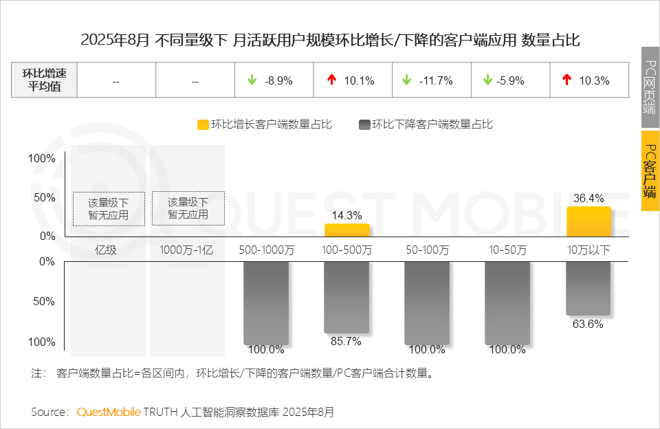 不外,绝大部门客户端使用规模环比下滑;此中,
